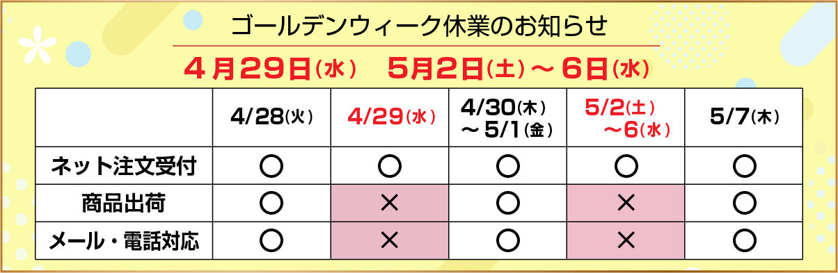 この間もインターネットからのご注文は受付致しておりますが、受注確認メール・ご入金の案内と確認・商品発送は1月5日(月)以降に順次ご対応させて頂きます。